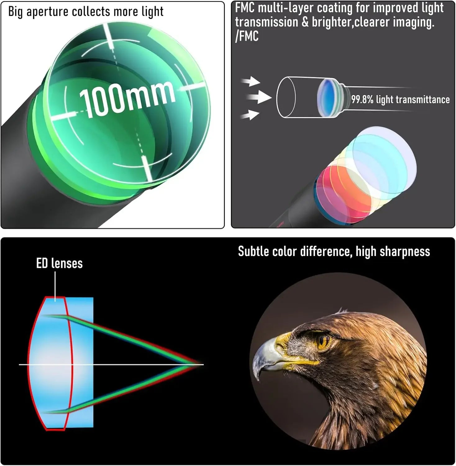 - Bright, high-contrast imaging: A 100mm aperture gathers more light for vivid lunar craters, Saturn’s rings, Jupiter’s bands, and faint nebulae.