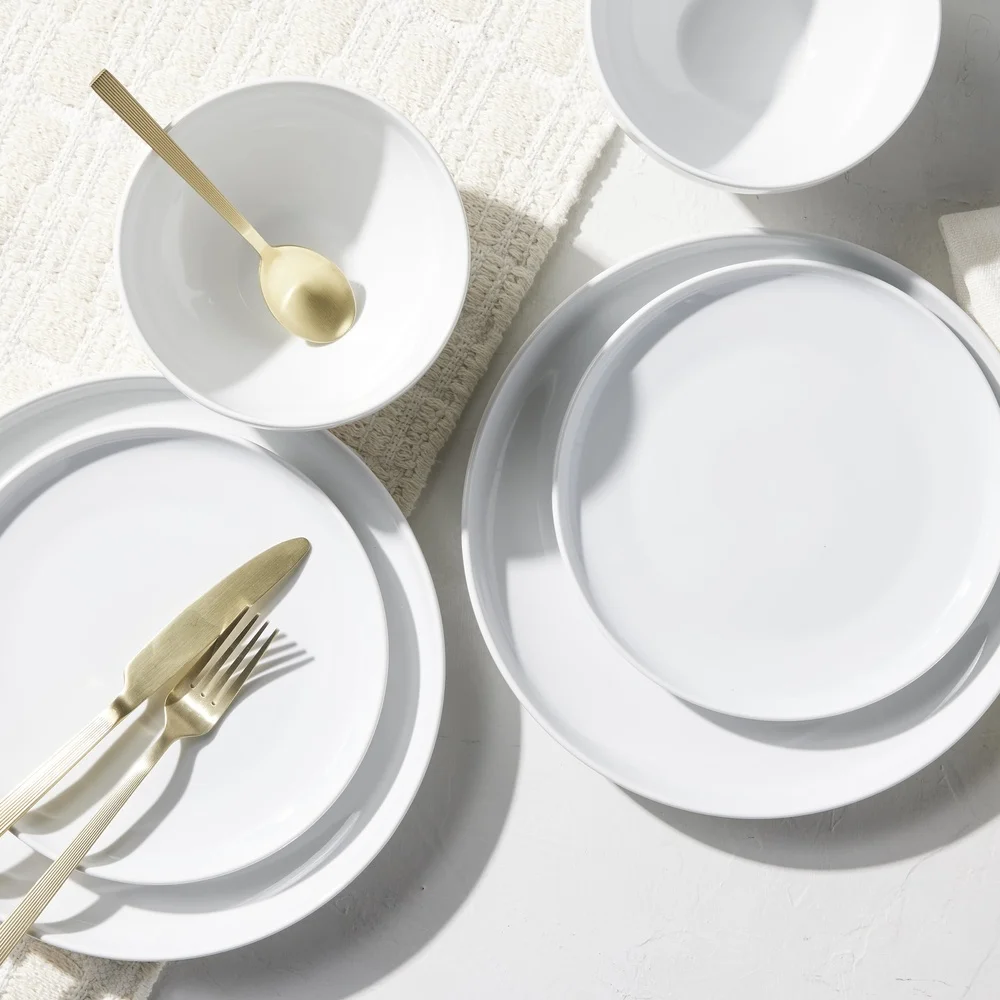12 Piece Durable Porcelain Dinnerware Set Microwave Dishwasher Oven Safe Modern High Dining Tableware Ideal Everyday Use