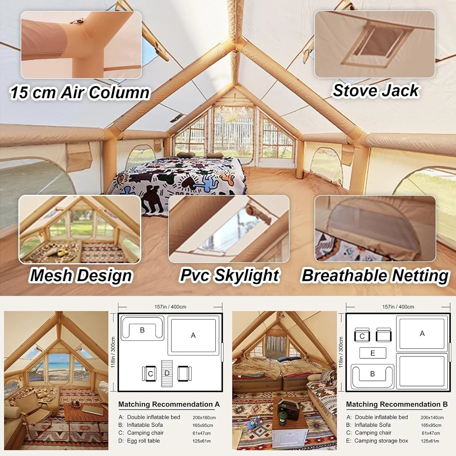 13 By 10 Foot Inflatable Tent For 8 To 10 People Season Waterproof Chimney Hole