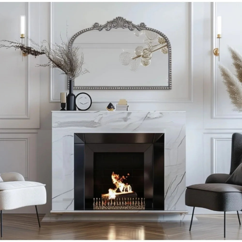 Elegant and timeless, our Arched Decorative Mirror with Gold Accents brings classic sophistication to any room. Featuring a traditional arched silhouette and radiant gold detailing, it instantly elevates mantelpieces, walls, and focal points in your home. Measuring 24" by 34", this statement mirror doubles as art, reflecting natural light to brighten your space and create a sense of added depth.