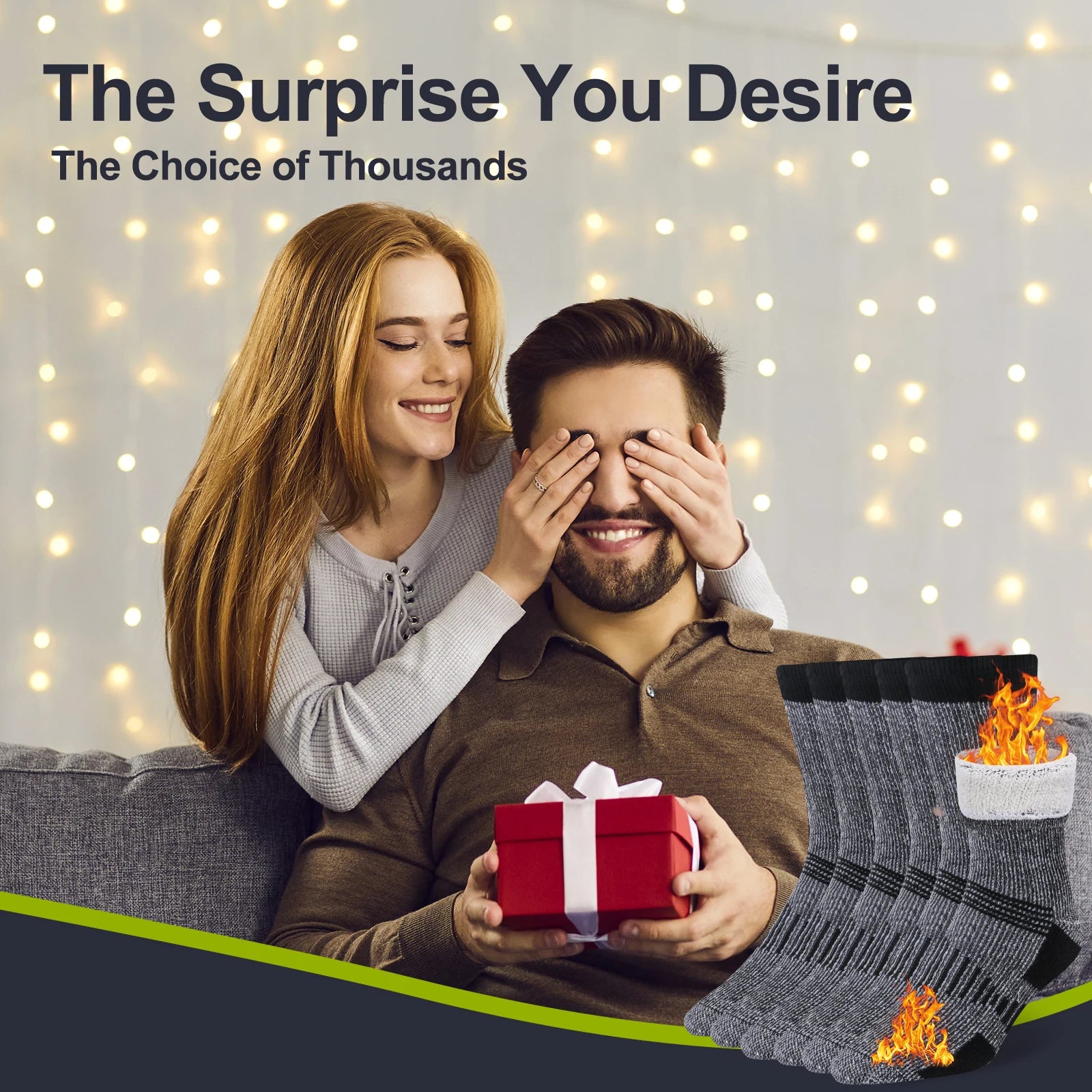 3 Pairs Merino Wool Crew Socks for Men and Women — thick, thermal winter socks built for outdoor adventures, running, and sports.
