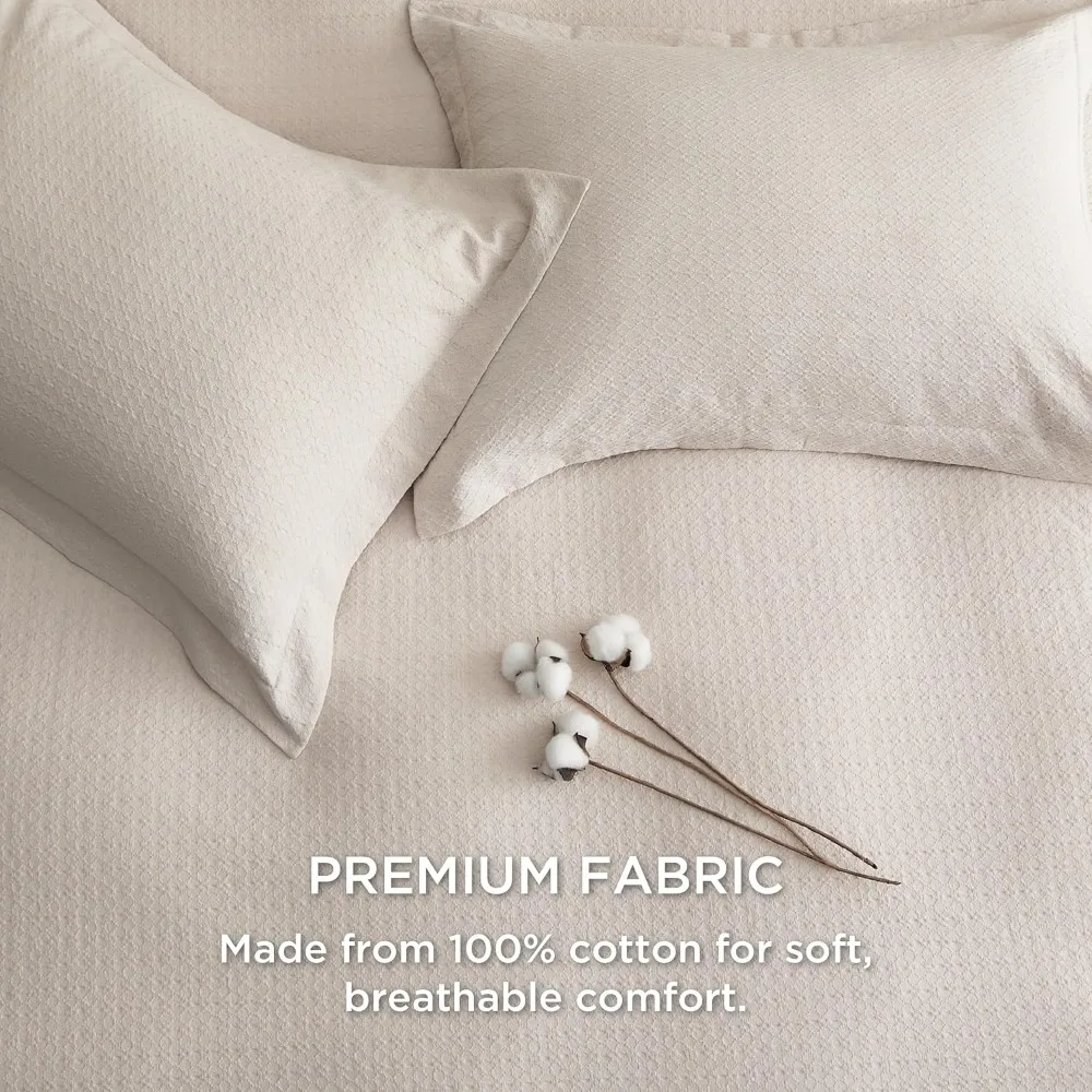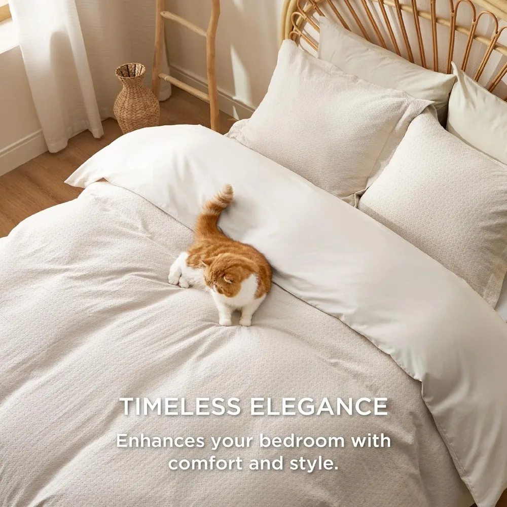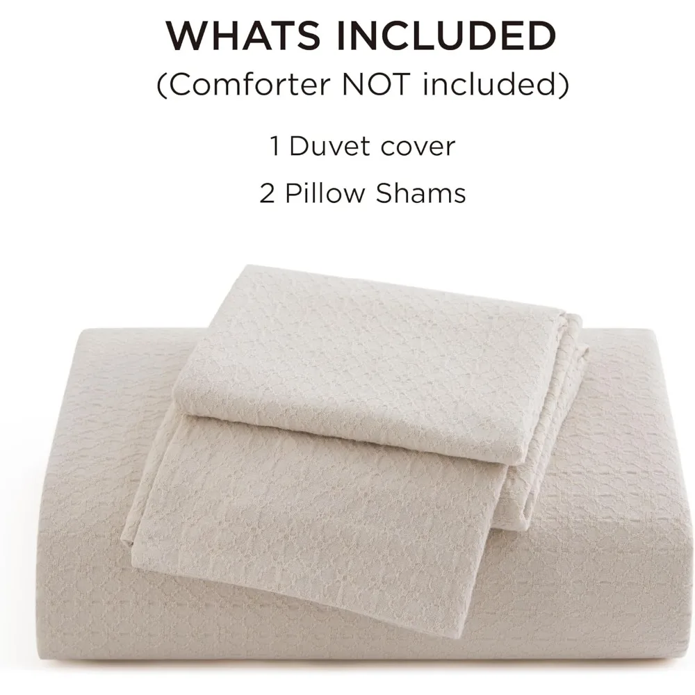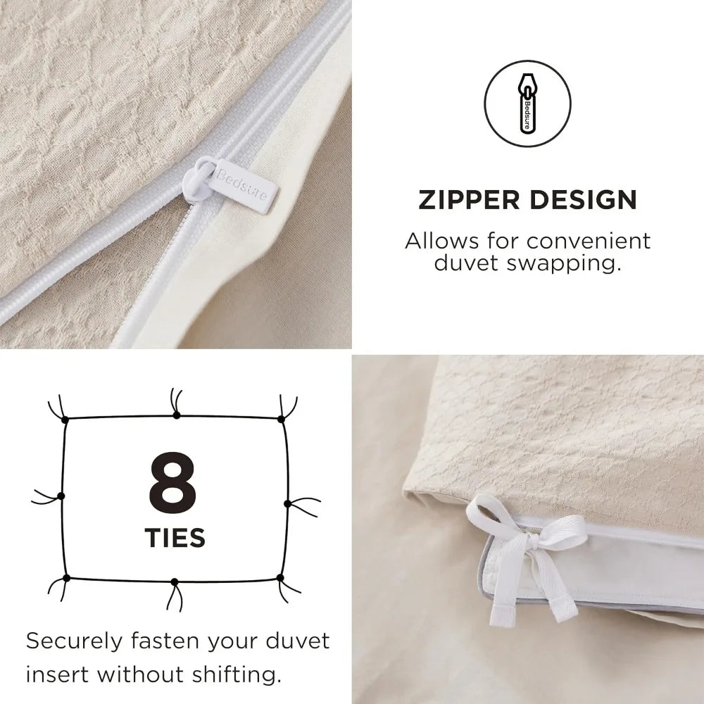 Cotton King Size Duvet Cover - Waffle Weave Boho Rhombus Pattern, Soft and Breathable Jacquard Bedding