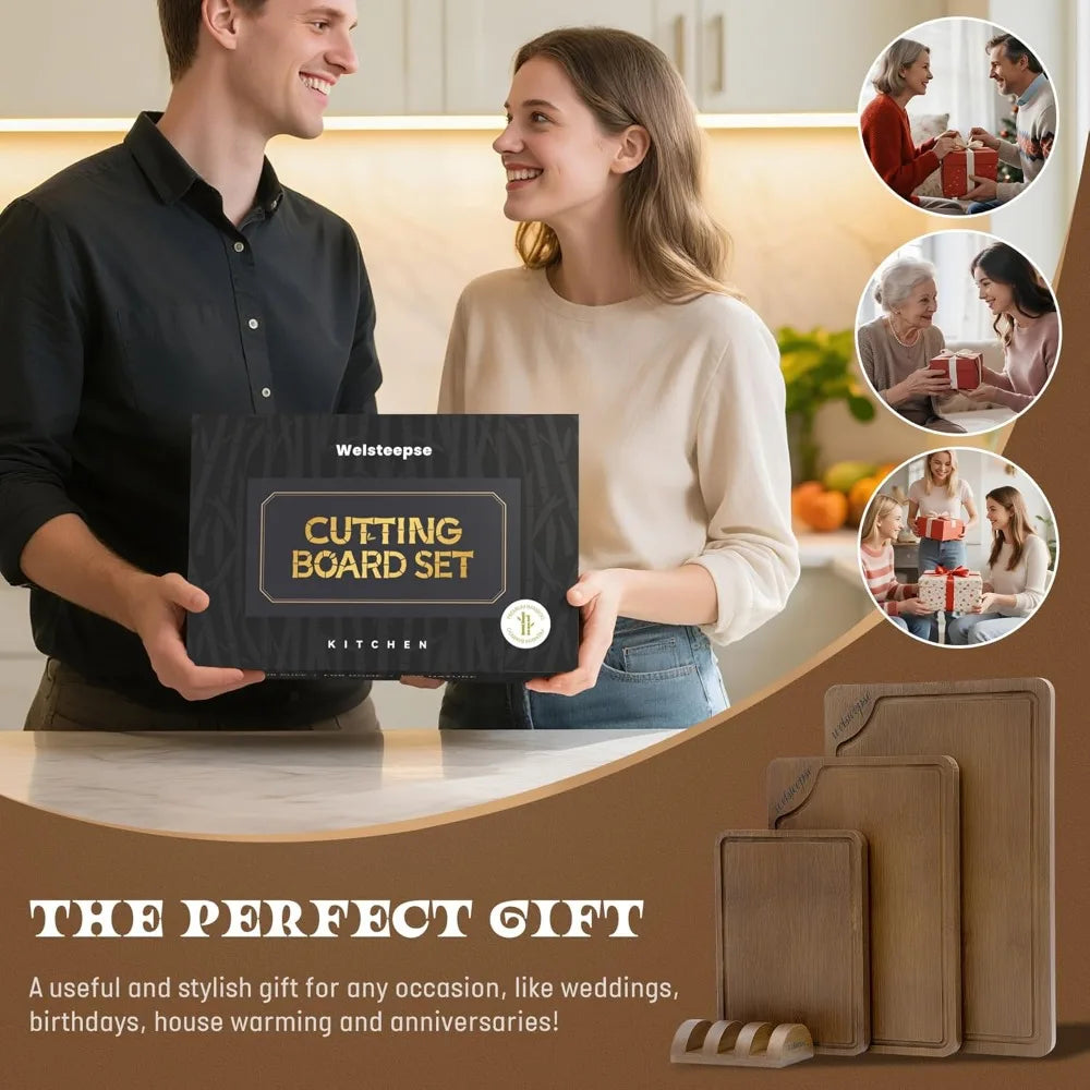 Upgrade your kitchen with a cutting board set that blends practicality, durability, and eco-friendly materials — the XL Bamboo Cutting Board Set Of 3 With Juice Grooves from Welsteepse.
