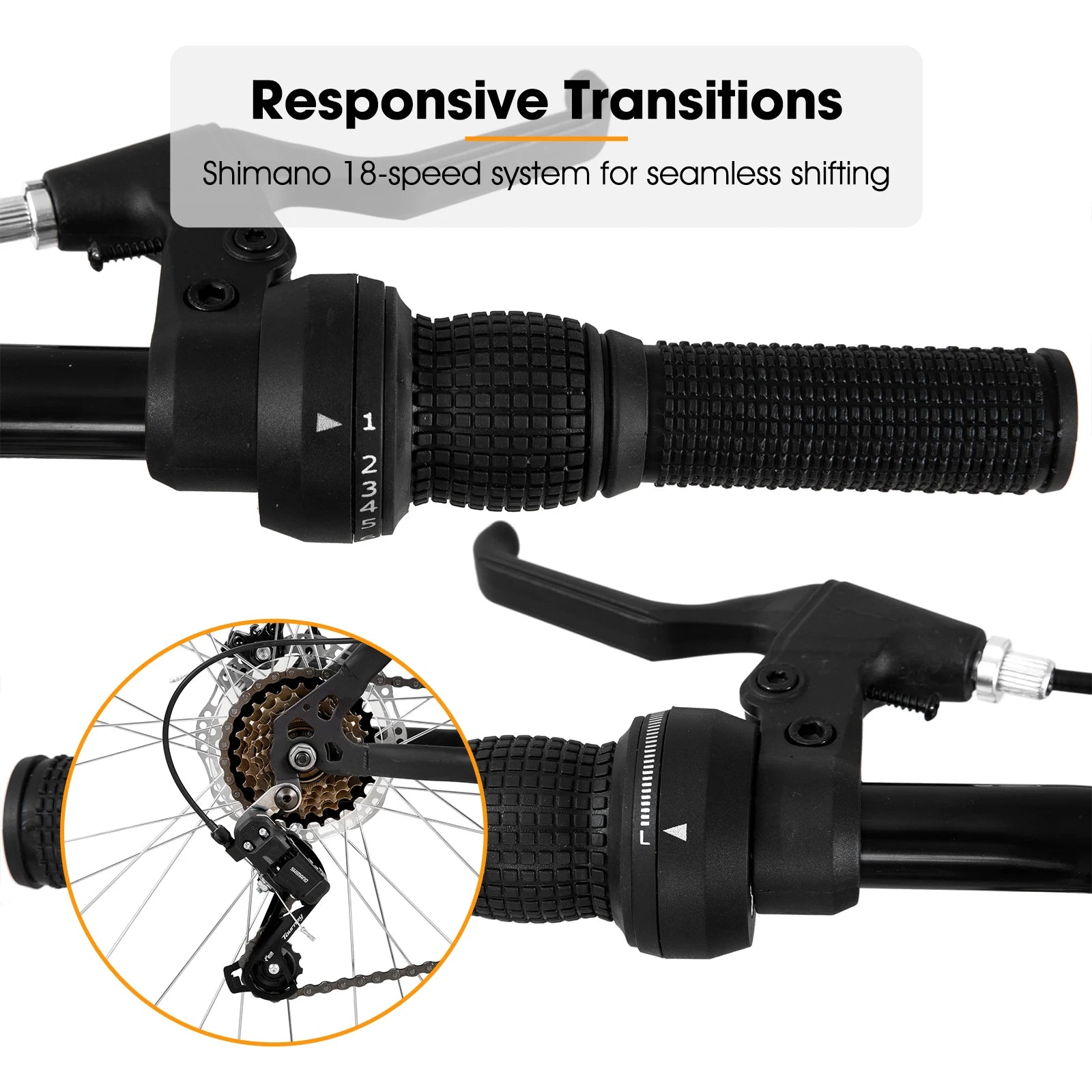 - Versatile 18-Speed Drivetrain — 18-speed gearing gives you plenty of range to tackle climbs and smooth acceleration on flats, helping riders build confidence and independence.