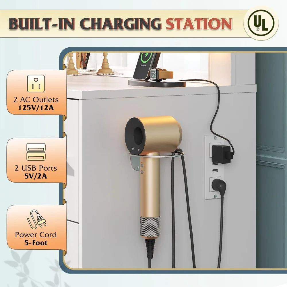 - Integrated Power Hub: Built-in 2 AC outlets and 2 USB ports, plus a dedicated hairdryer holder. Experience tangle-free cable management and safe operation for all your styling tools, with UL/ETL certification for electrical safety.