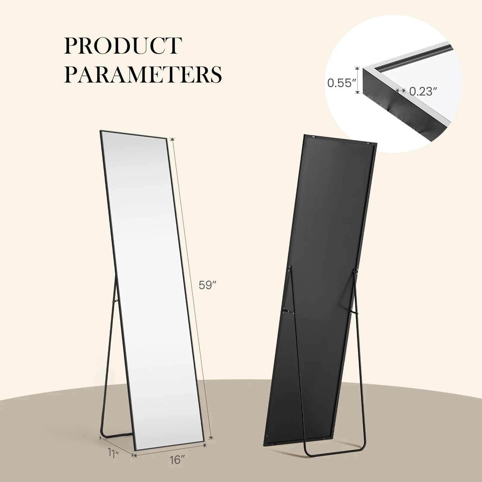 JHK Full Length Mirror Aluminum Alloy Frame Standing Or Wall Hanging 59x16 64x21