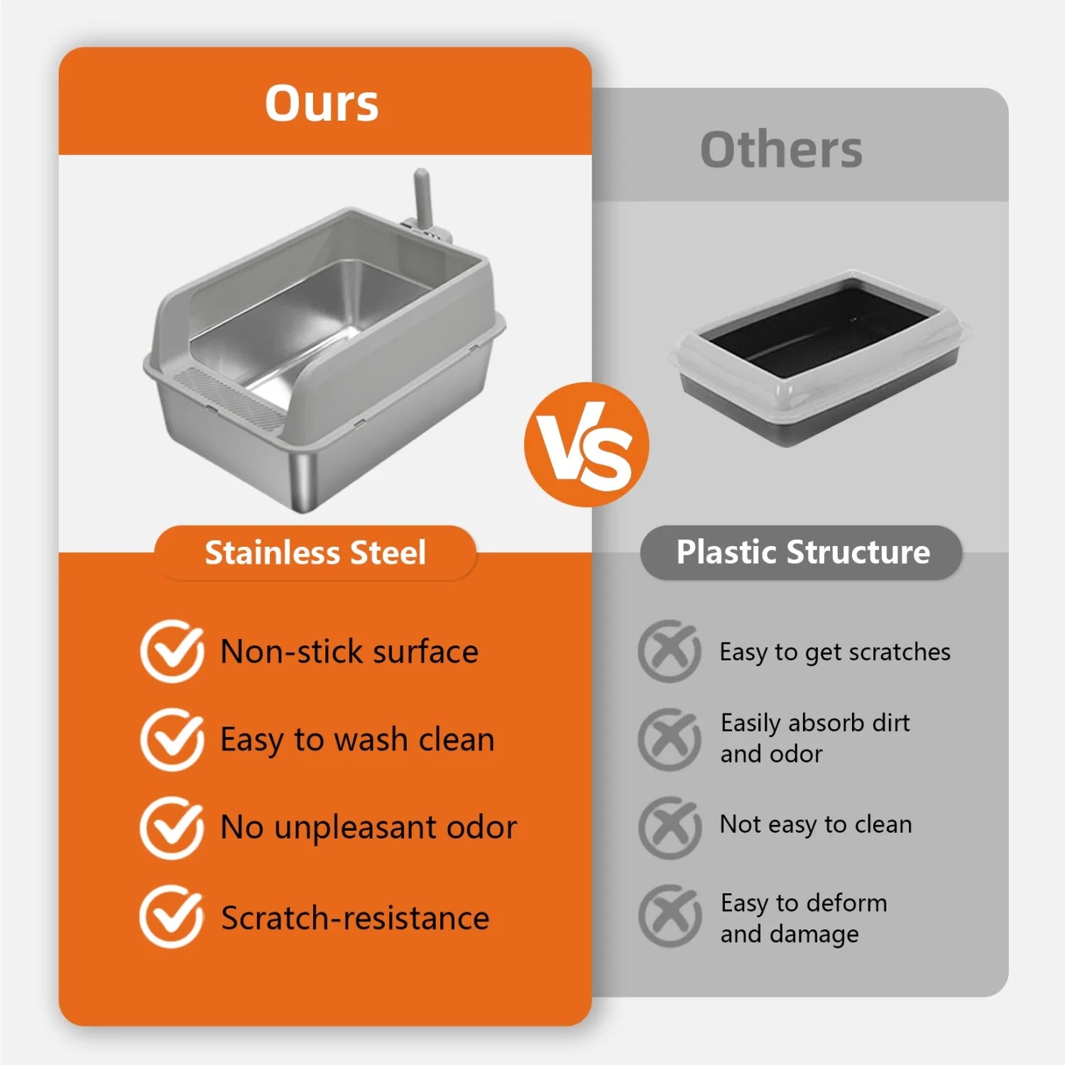 Upgrade to a cleaner, more convenient litter experience for your cat and your home with this high-side stainless steel open litter pan that cleans up in moments and reduces daily fuss.