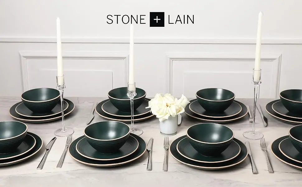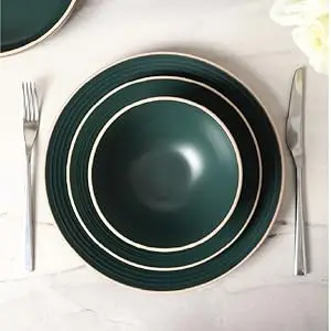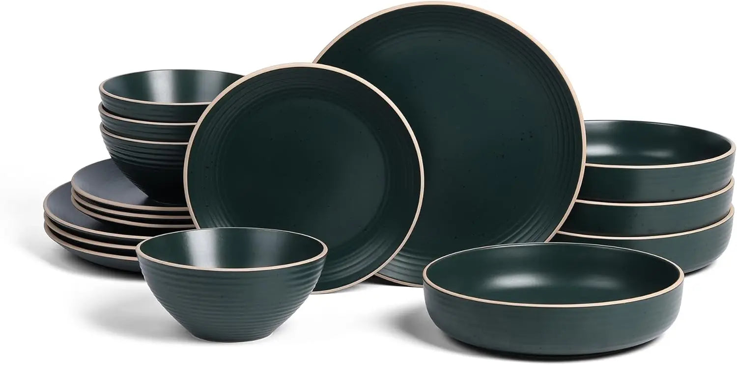 1. Lauren Modern Stoneware 16-piece Round Dinnerware Set, Plates and Bowls Set, Dish set for 4, Dark Green