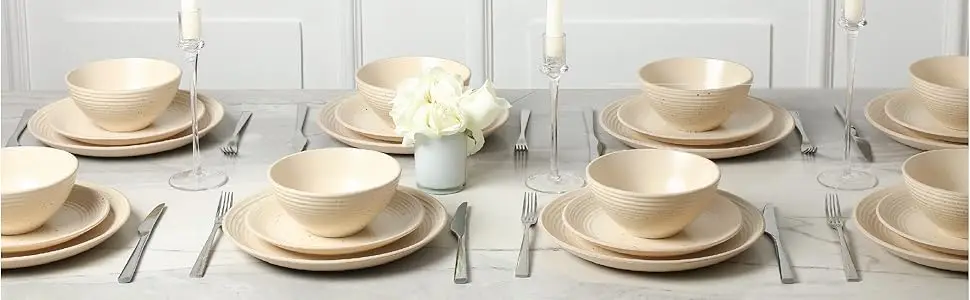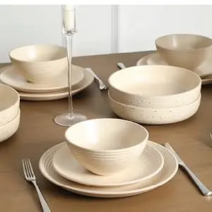 3. SERVICE FOR 4: Our Lauren Stoneware Rustic Dinnerware Set serves 4 guests with 16 total pieces, including 4 large round dinner plates, 4 round salad plates, 4 round soup bowls, and 4 large pasta bowls.
