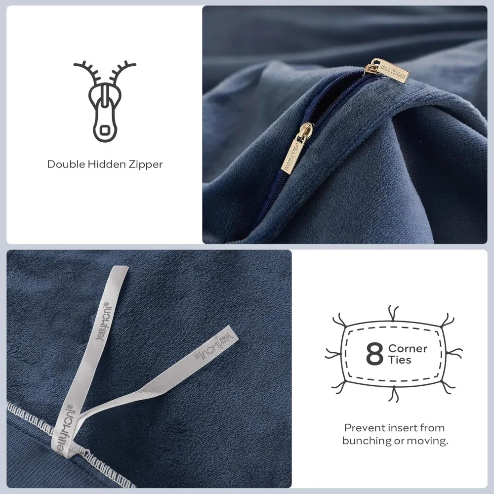 This product description highlights the features of the Jellymoni duvet cover set: - Exceptional Comfort: Made from 100% premium synthetic velvet with a 230GSM weight, this duvet cover set provides superior softness and warmth. It offers a plush, silky texture that wraps you in comfort, making every night's sleep feel like a luxurious experience. - Stylish Design: The duvet cover has a solid color that changes subtly with touch, giving it a dynamic and elegant look. The velvet's interplay of light and shadow adds a touch of sophistication to your bedroom, especially when illuminated by soft lighting. - User-friendly Design: The duvet cover comes with a dual zipper and eight corner ties to ensure a secure fit and prevent shifting throughout the night. It arrives in an exquisite gift box, making it an ideal present or a way to add luxury to your own bedroom. - Easy Maintenance: This duvet cover is machine washable in cold water on a gentle cycle. It's recommended to wash it separately before the first use, without using bleach. To maintain its softness and vibrant colors, tumble dry on low heat or air dry flat. - Contents: The Jellymoni Velvet Duvet Cover Set includes one king-sized duvet cover measuring 104" x 90" and two matching envelope pillowcases measuring 20" x 36". We offer a 30-day refund or replacement policy for your peace of mind.