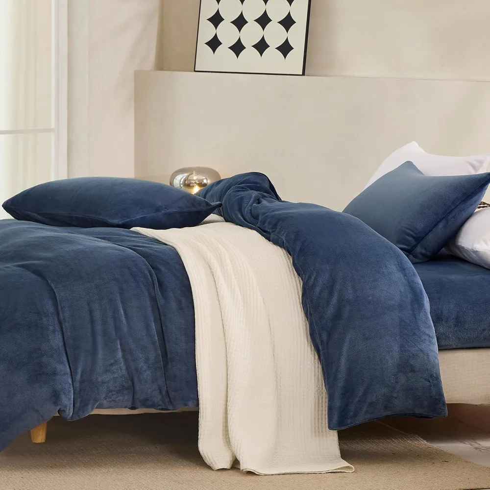 Luxurious Soft Flannel Duvet Cover Set - King Size Comforter Cover with 3 Pieces and 8 Corner Ties