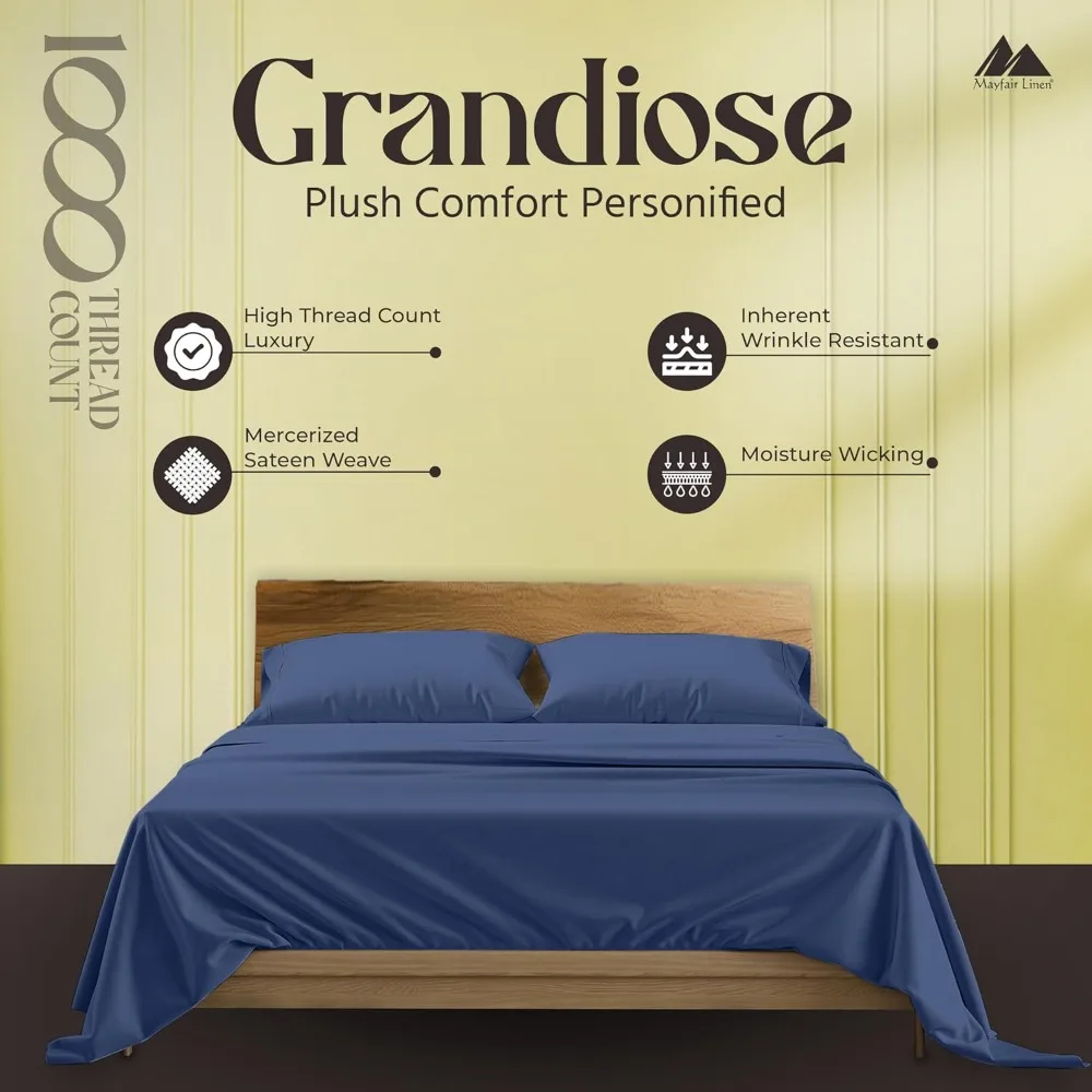 Mayfair Linen 100% Egyptian Cotton Sheets Queen Size - 1000 High Thread Count Sheets, 4 PC Luxury Hotel King Size Sheet Set, 16
