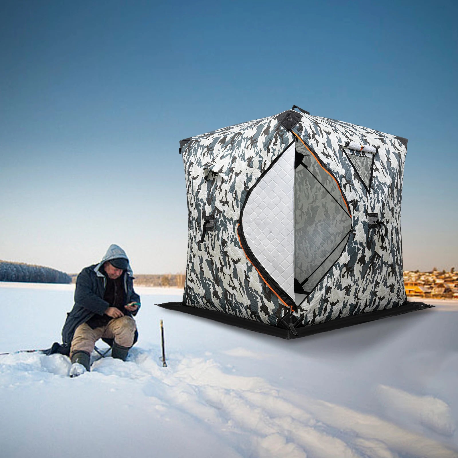 Portable Ice Fishing Tent For 1 To 2 People Outdoor Thermal Camping Shelter Red Orange Blue Camouflage