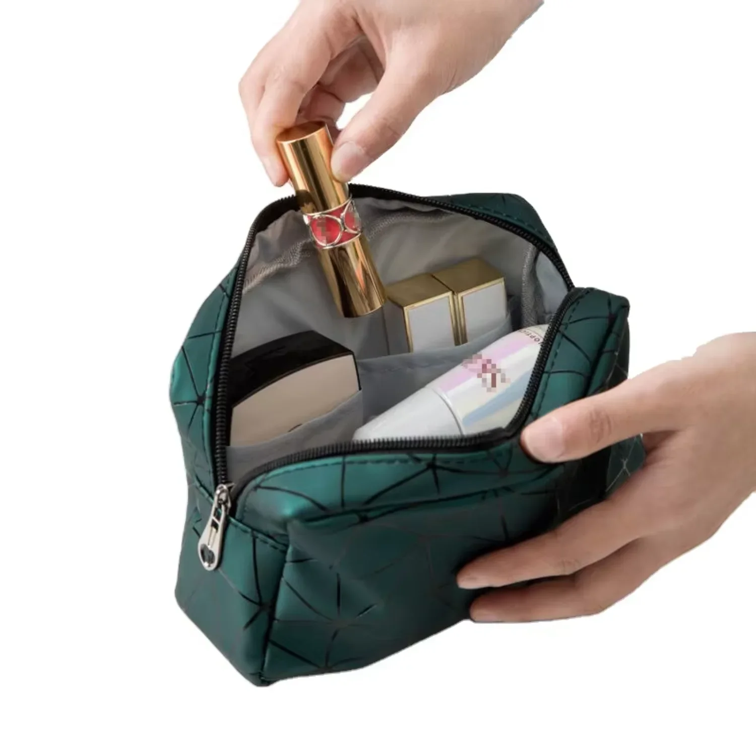 2. Add a touch of style to your beauty routine with our geometric-patterned Travel Makeup Bag. This lady-like beauty case is perfect for storing your makeup and toiletries while on the go.