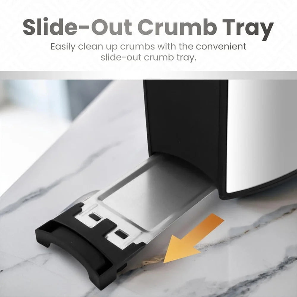 Equipped with self-centering guides, 5 adjustable shade settings, and a comprehensive range of functions, it toasts consistently while keeping cleanup simple. The Bagel, Defrost, Reheat, and Cancel options ensure you can tailor each slice to perfection, and the convenient auto pop-up with auto shut-off adds peace of mind for busy mornings.