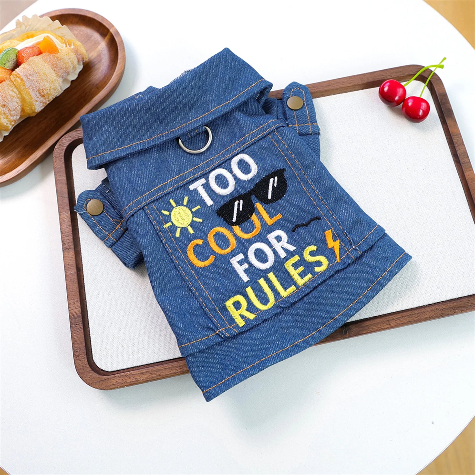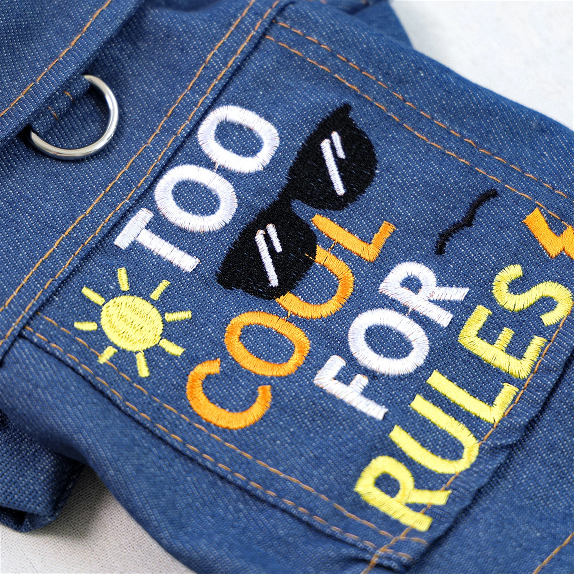 Sun Letter Embroidery Dog Jeans Jacket Denim Coat for Small Medium Girl Boy DogsSize (cm)