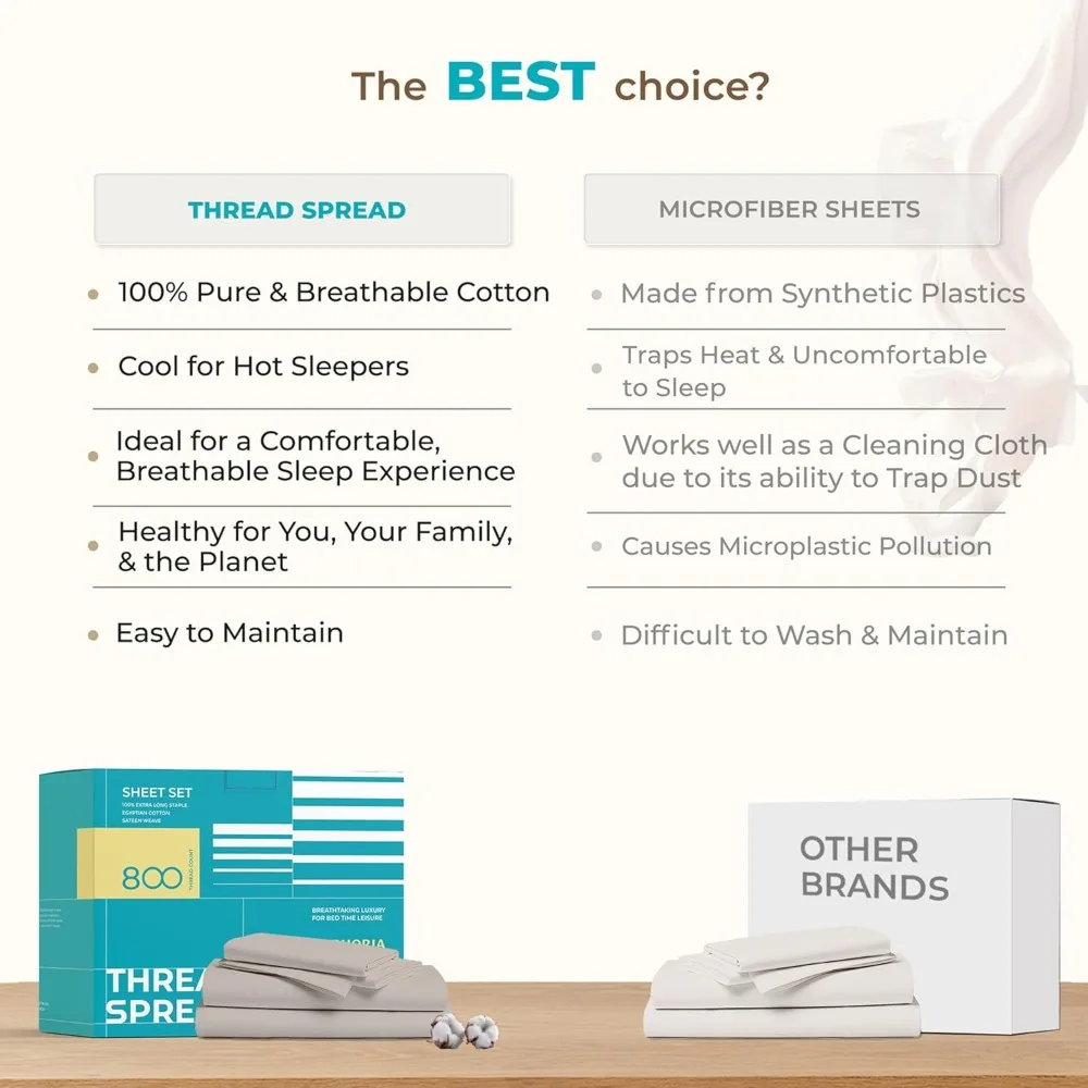- Safe For You & Your Family: Cotton is naturally-sourced and earth-friendly, unlike microfiber and other linens that are not ideal for your health and skin. At Thread Spread, we focus on healthy and quality living, and our luxury queen cotton sheet set are certified as STANDARD 100 BY OEKO-TEX to be free from harmful substances