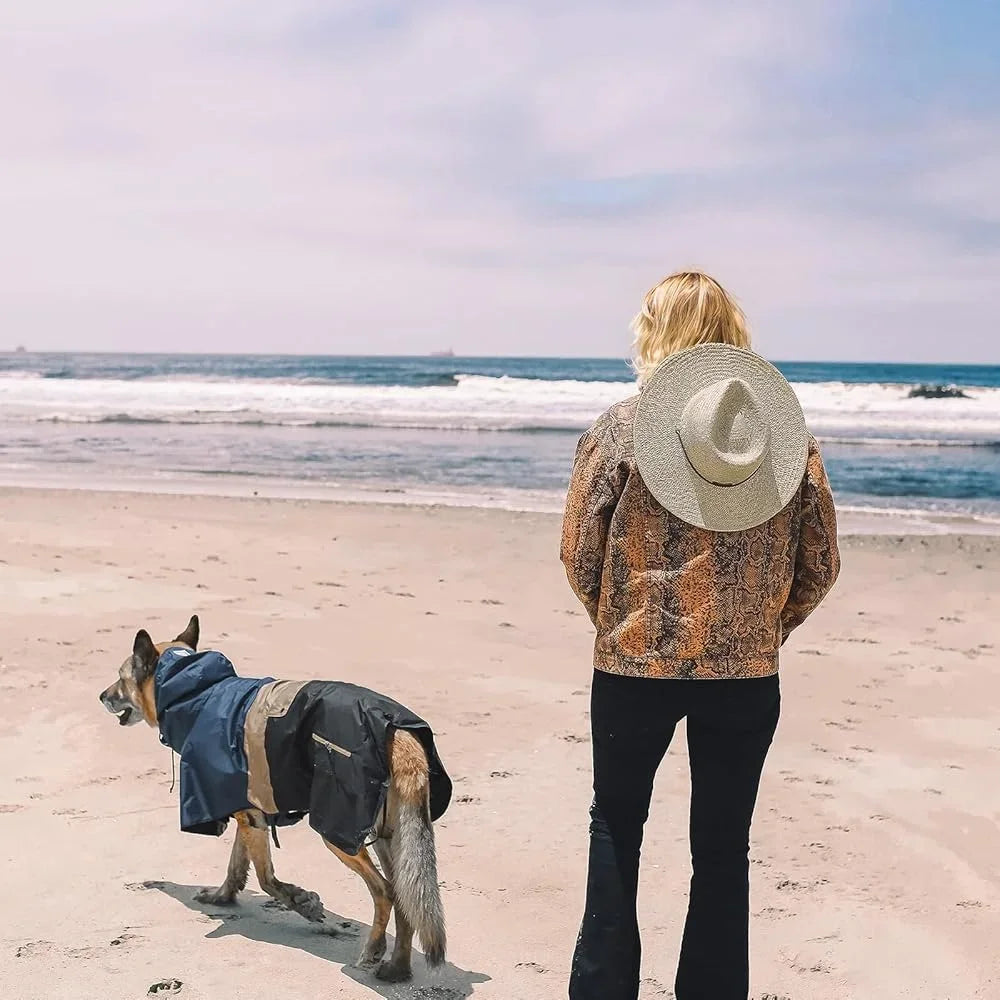 Designed for convenience, this coat is lightweight and easy to carry, with a dog poncho look that folds neatly into a pack. The buckle closure makes on/off a breeze—simply hood your dog, fasten the buckle, and secure their legs with elastic straps for a snug fit on the go.