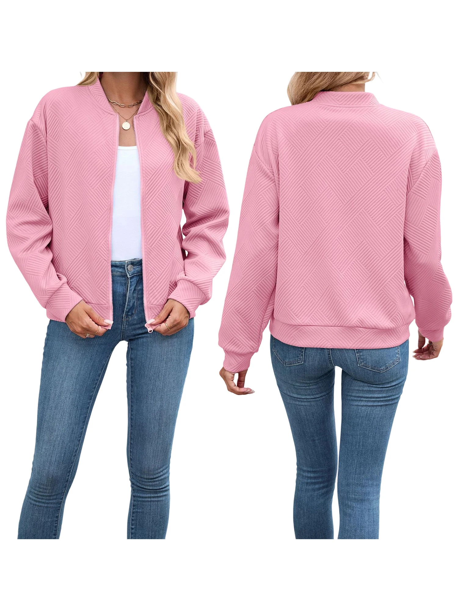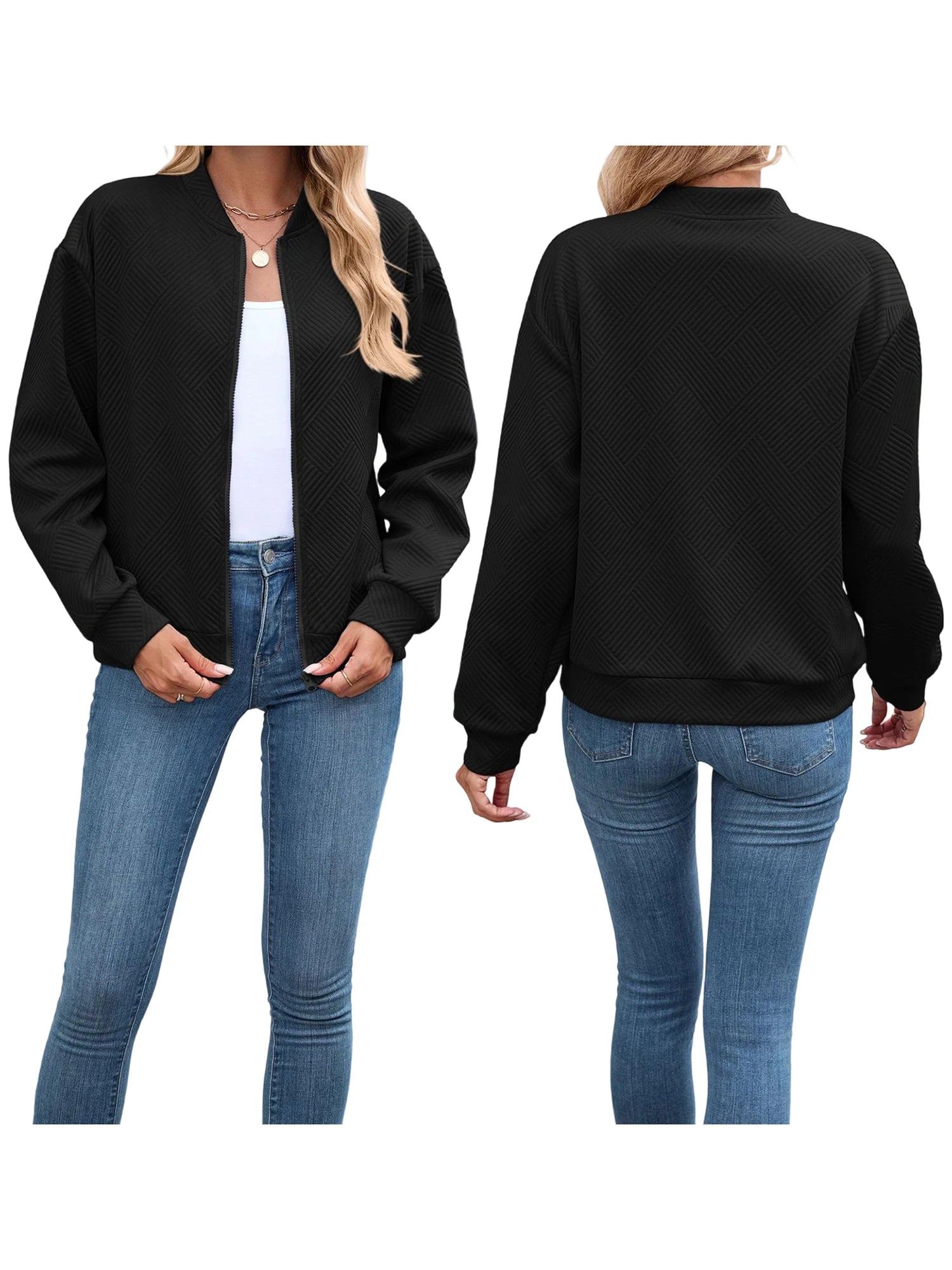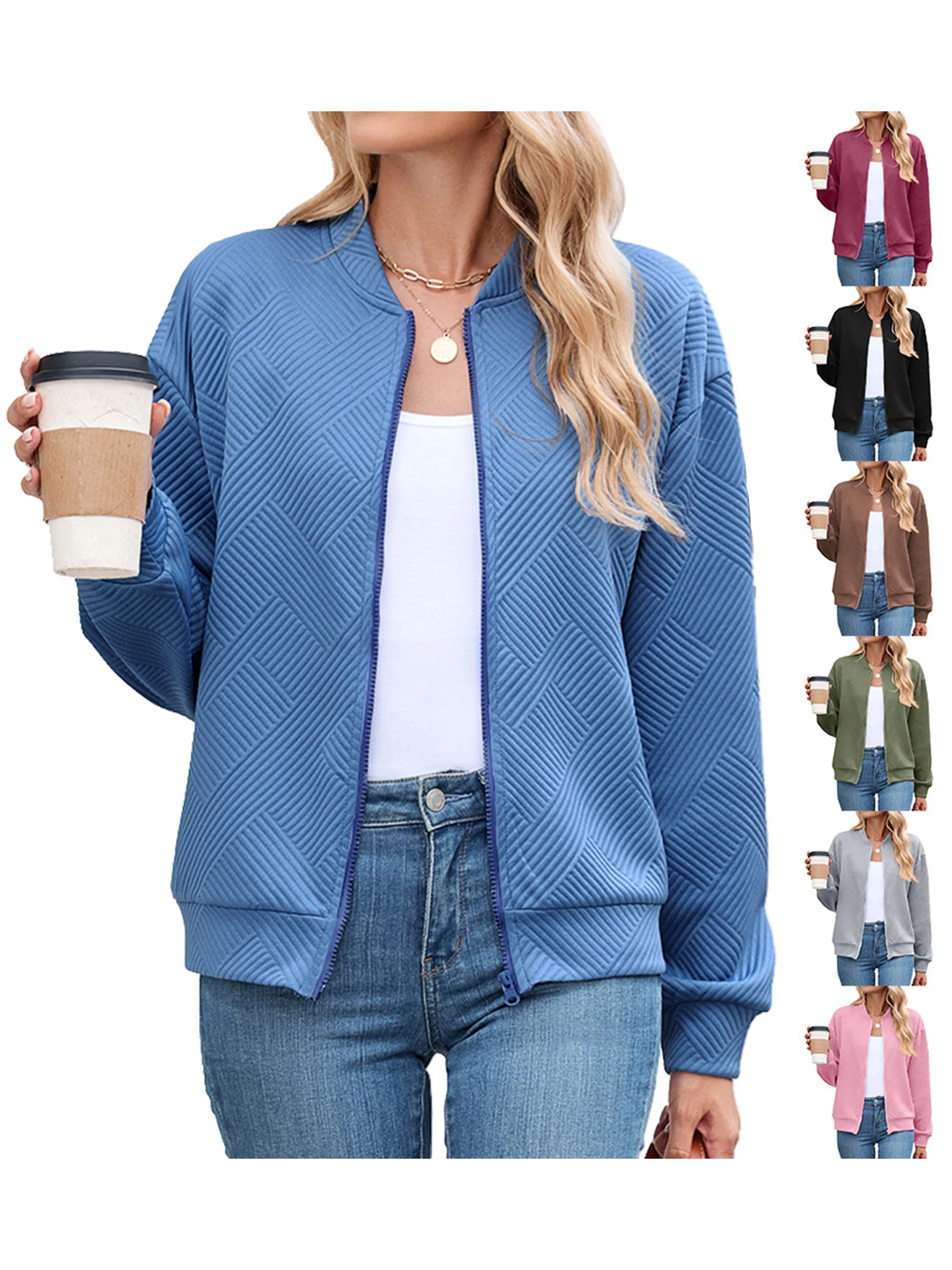 Women's Fall Coat Long Sleeve Full Zip up Baseball Jacket Solid Color Casual OuterwearSize (cm)