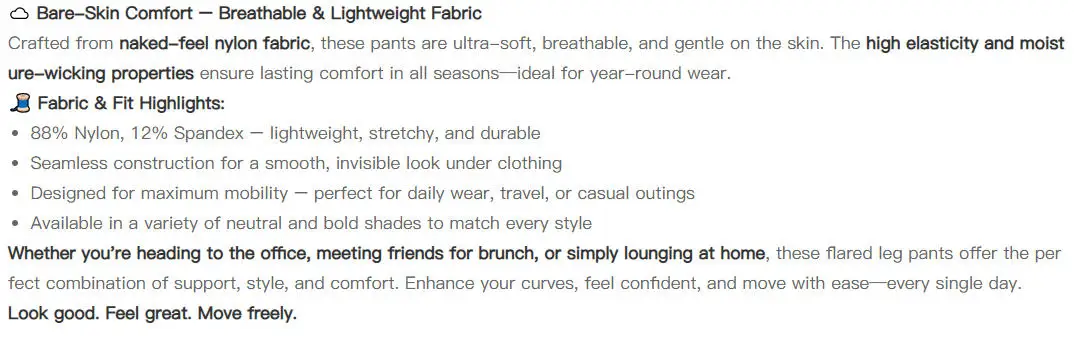 Four-Season Flared Leg Pants – Sculpted Silhouette, Ultimate Comfort