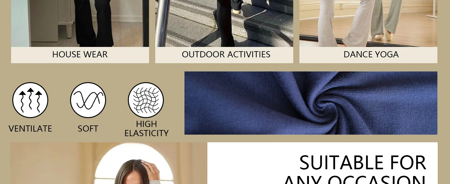 The design is clean and elegant, pairing a cropped crop top with flared pants for a look that blends casual comfort with modern style, perfect for everyday outings, lounging at home, and more. The fabric appears soft and stretchy, hugging the body's curves for a comfortable fit. The cropped top accentuates the waistline, enhancing body proportions; the flared silhouette flatters the legs, creating a sleek and elongated appearance.