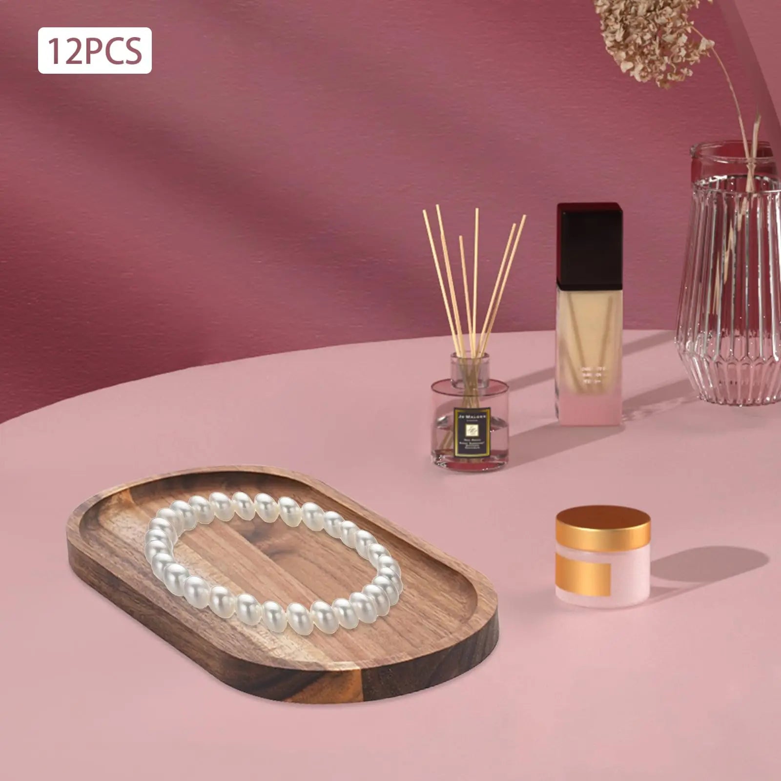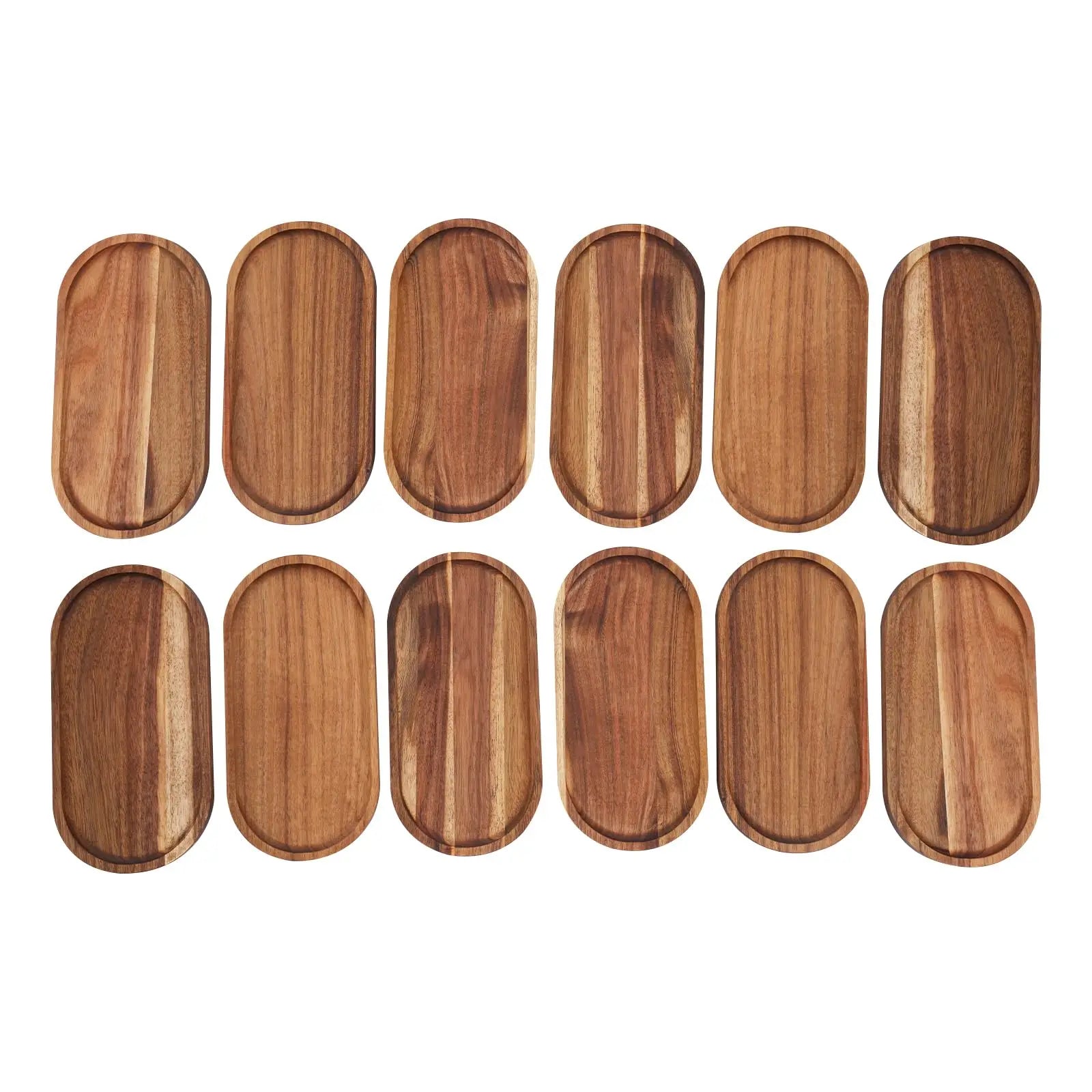 Oval Wooden Serving Tray Set of 12 10x5x0.78in for Coffee Table Decor